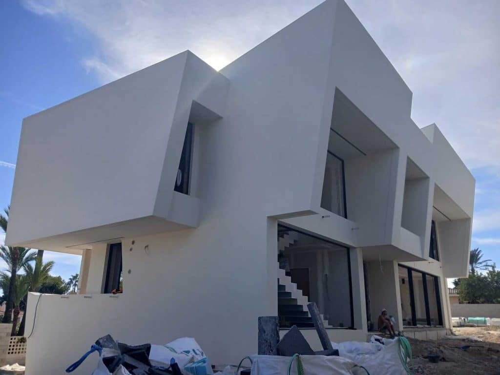 En este caso, se trata de una vivienda unifamiliar de obra nueva ubicada en Benidorm, en la que se ha optado como solución de fachada el sistema SATE MONTÓ thêrm para garantizar un aislamiento óptimo.